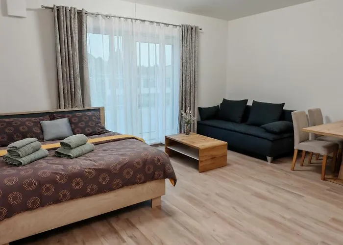 The 39 m² Novy Apartman Na Grusce Straznice U Bataku is located around a 15-minute walk from the Chateau Straznice and offers Wi-Fi for either business or leisure. Guests can explore the area with rental bicycles available on site.